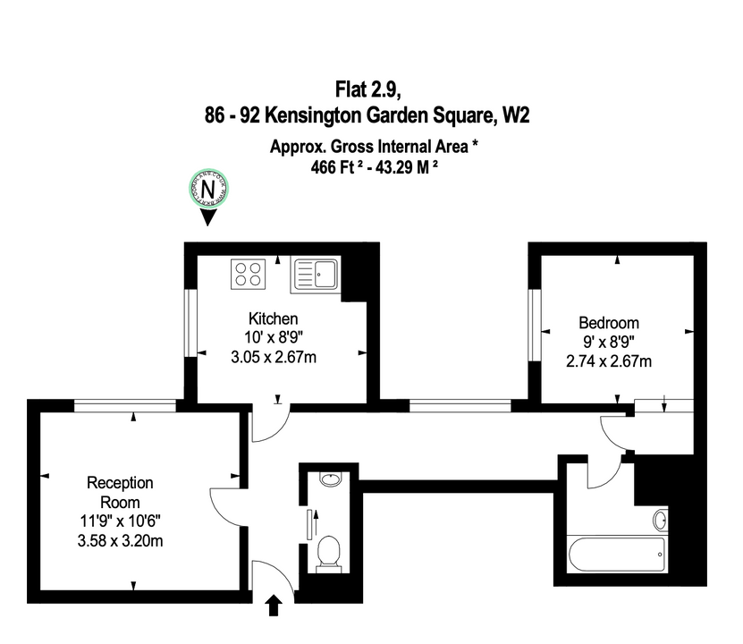 The apartment has been thoughtfully designed, featuring a bright and spacious reception room and a separate, fully equipped kitchen. Crucially, the windows offer delightful views over the picturesque Kensington Garden Square, a feature that immediately elevates the sense of place. The accommodation is completed by a comfortable double bedroom and a modern bathroom.