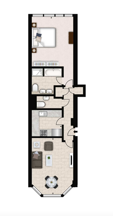This is a truly rare find: a generously proportioned one-bedroom apartment boasting two luxurious bathrooms—ideal for guests, morning routines, or premium convenience.